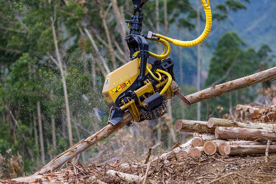 尺寸雖小,但卻是一款動力強勁的伐木機頭,專為疏伐和小型樹木而設計;以易用性、耐用性、性能、經濟性等為出發點設計;此款適合多徑采伐,最大砍伐直徑360mm;電腦板控制,砍伐長度自由設置,分段切割更為精確;自動進給、自動去枝、遇堵處理、流量自遁應、鏈鋸自動張緊操作更輕松高效;采用徐沃自主研發森林狼砍伐控制系統,操作更貼合砍伐實際需求以及用戶操作習慣,針對性設計,主機匹配性最優,砍伐效率高、油耗低,維修簡便,零部件價格經濟。