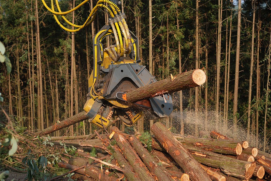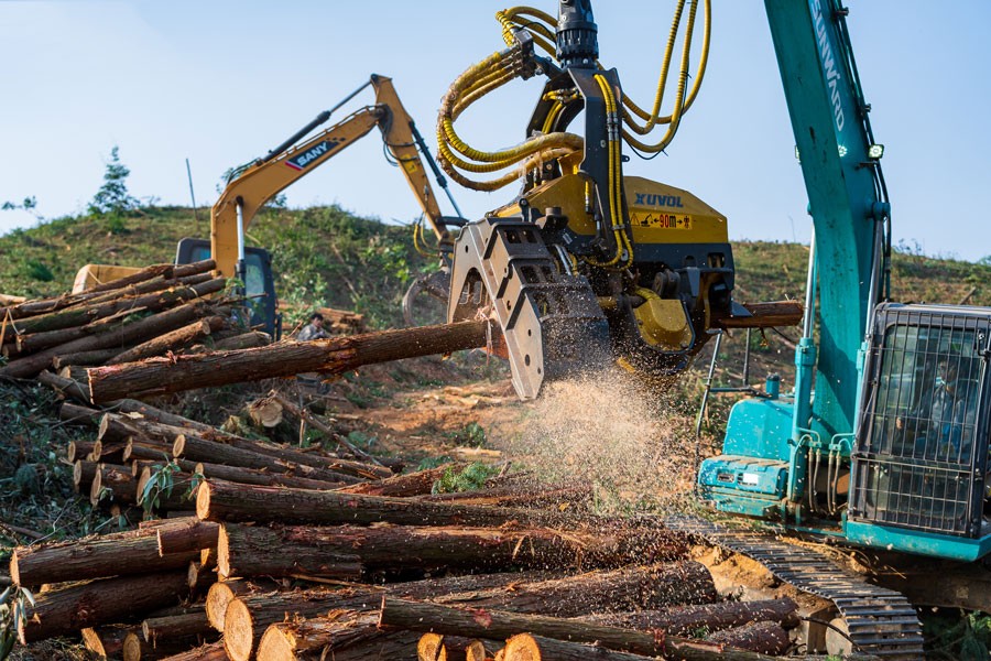 適用于各種森林的高效、靈活和可靠的伐木機頭,專為大樹而設計,需要大型基礎機器,是一個靈活且適應性強的伐木機頭,即使在最困難的森林中,它也是可靠和高效的。憑借強大的牽引力和有效的去枝功能,提高作業生產率。適合多徑采伐,最大砍伐直徑600mm,電腦板控制,砍伐長度自由設置,分段切割更為精確;自動進給、自動去枝、遇堵處理、流量自遁應、鏈鋸自動張緊操作更輕松高效;徐沃自主研發森林狼砍伐控制系統,操作更貼合砍伐實際需求以及用戶操作習慣,針對性設計,主機匹配性最優,砍伐效率高、油耗低,維修簡便,零部件價格經濟。