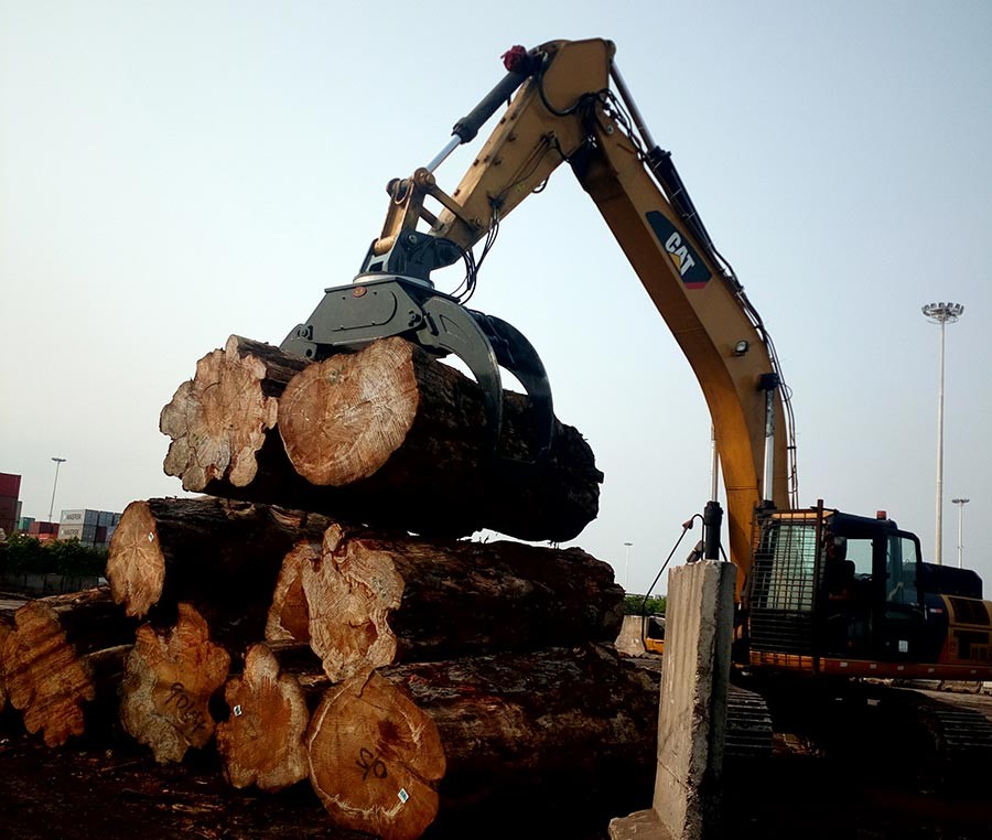 適用用港口木材裝卸施工:采用特殊鋼材,具有重量輕、強(qiáng)度好、耐磨等優(yōu)點(diǎn);WYJ-300P適用30-35噸挖掘機(jī),配備液壓旋轉(zhuǎn)器,可順時(shí)針和逆時(shí)針360度旋轉(zhuǎn),采用電控手柄操作系統(tǒng),配備進(jìn)口電磁閥,可控制轉(zhuǎn)速,運(yùn)行平穩(wěn);適用于大型港口木材裝卸施工、桉木裝卸、竹材裝卸、甘蔗裝卸等施工場(chǎng)合,大大提高作業(yè)效率以及節(jié)省人工成本。